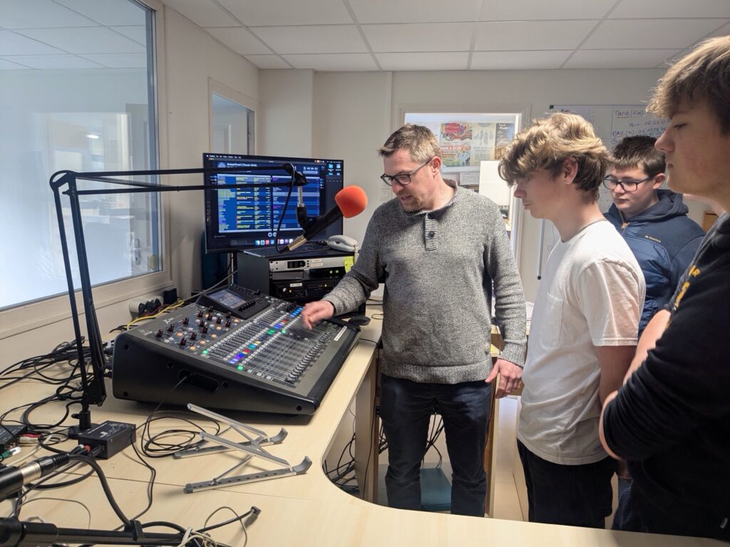 Ce vendredi 4 avril, les élèves du dispositif ULIS ont fermé la page de cette belle aventure radio avec Jean Benoît et sa radio PLUM FM. En effet vendredi, nous nous sommes rendus dans les studios d’enregistrement de PLUM FM à SERENT afin de finaliser l’enregistrement de notre émission qui sera diffusée le mardi 22 avril à 14h et rediffusée le samedi 26 avril à 17h sur les ondes de PLUM FM. Vous pourrez bien entendu réécouter cette émission en podcast sur le site de PLUM FM.